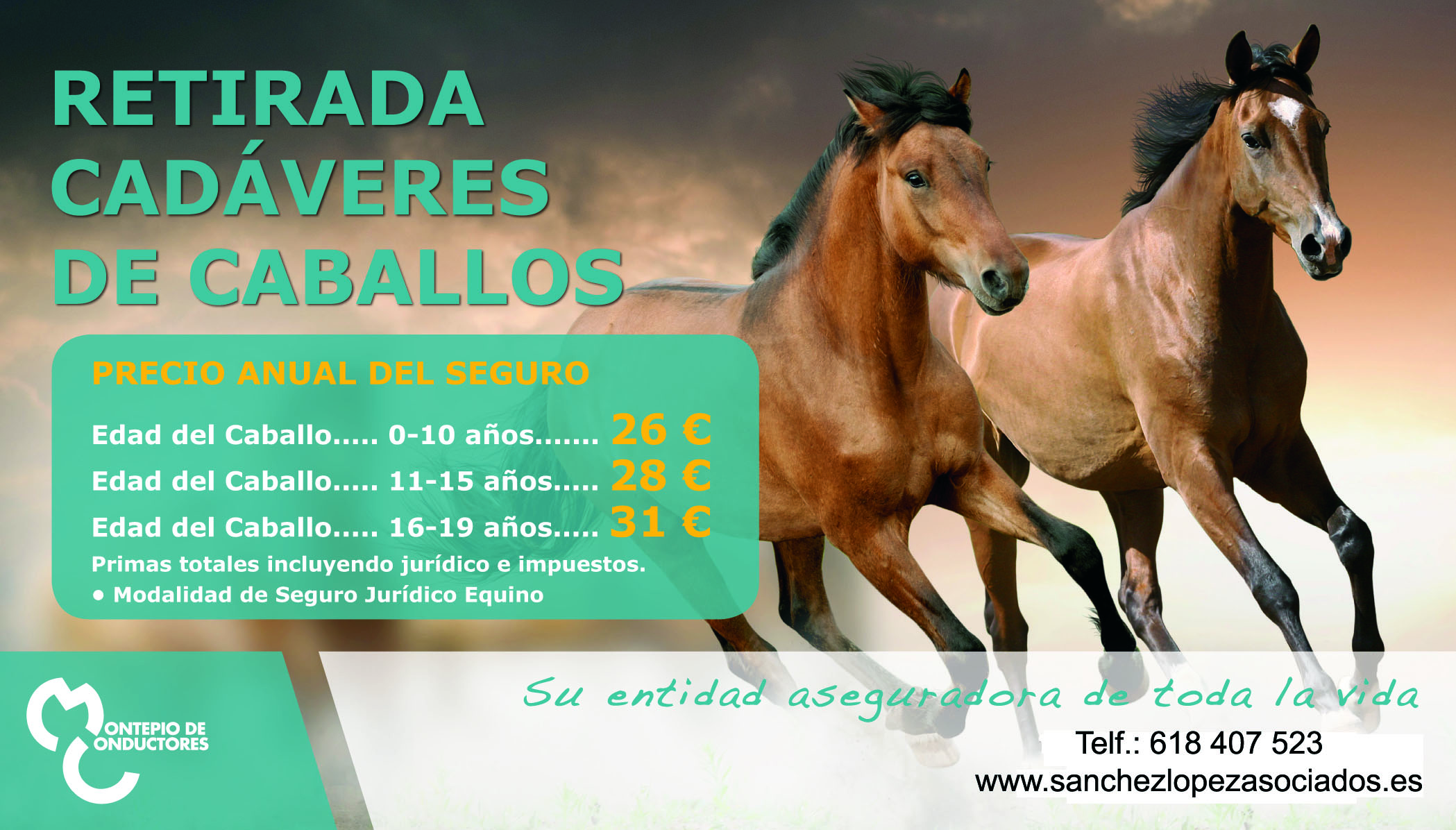 Cobertura básica, muerte por enfermedad o accidente, incluida la muerte a consecuencia de Cólico, con indemnización del 100% del valor del caballo.